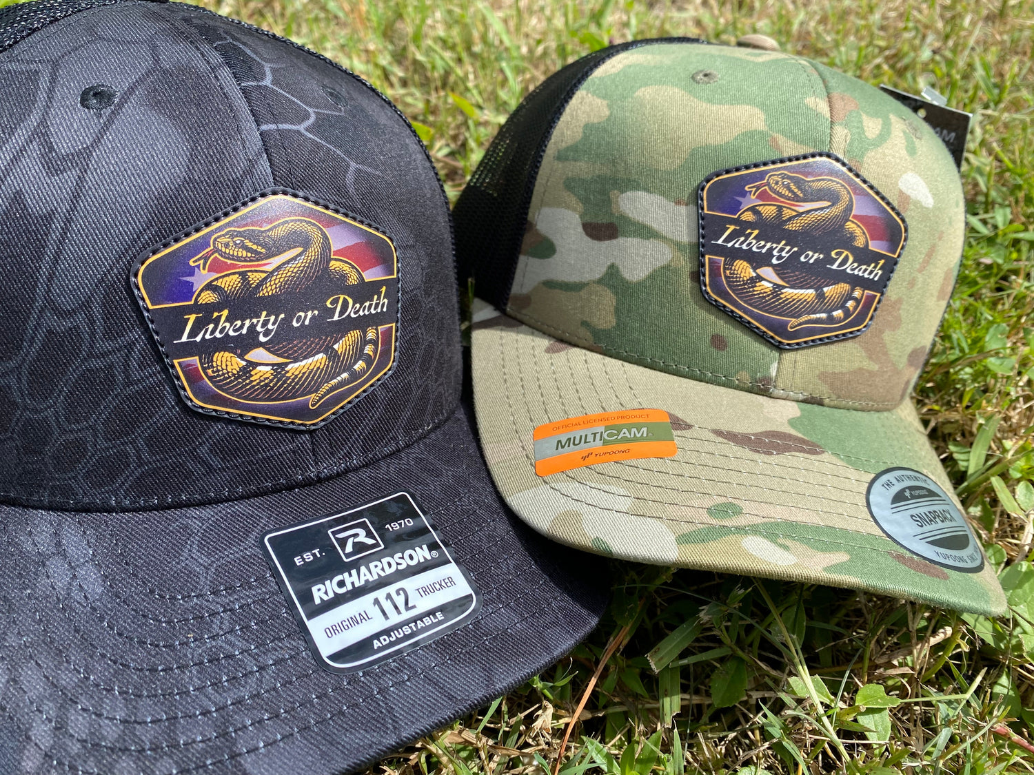 Pick your patch design, then select hat style, hat colors, and your patch color. Fully customize your own hat using our designs!