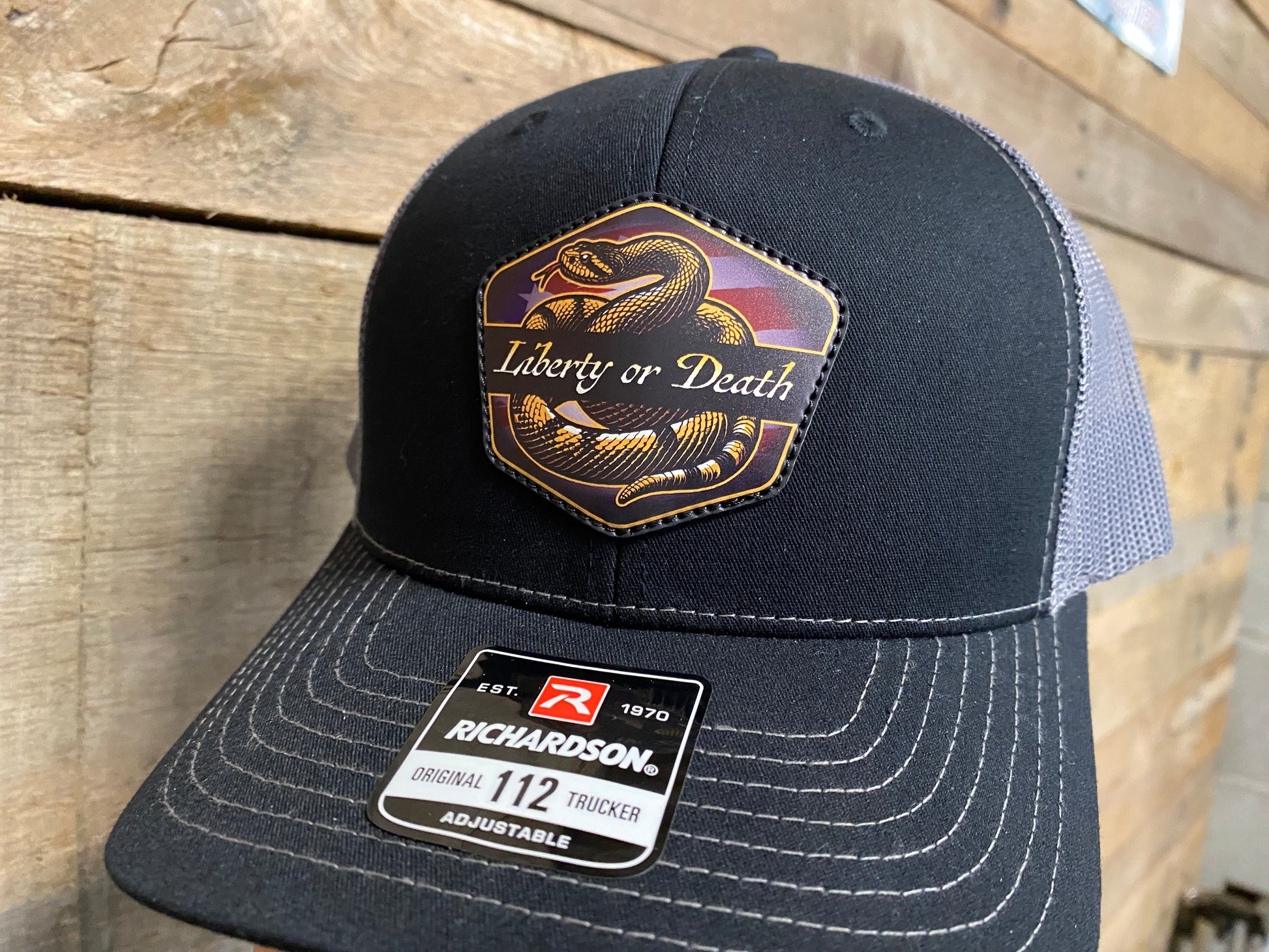 Liberty or Death design printed on premium materials and stitched directly to hat. IN STOCK COLORS ONLY. If you'd like a different color combination, please use our hat builder feature.