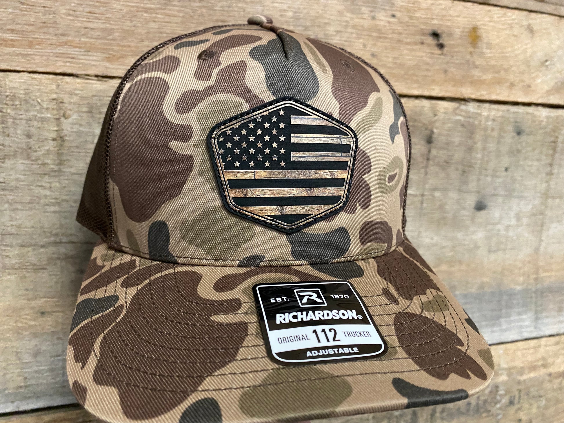 US flag design laser engraved on premium materials and stitched directly to hat. IN STOCK COLORS ONLY. If you'd like a different color combination, please use our hat builder feature.